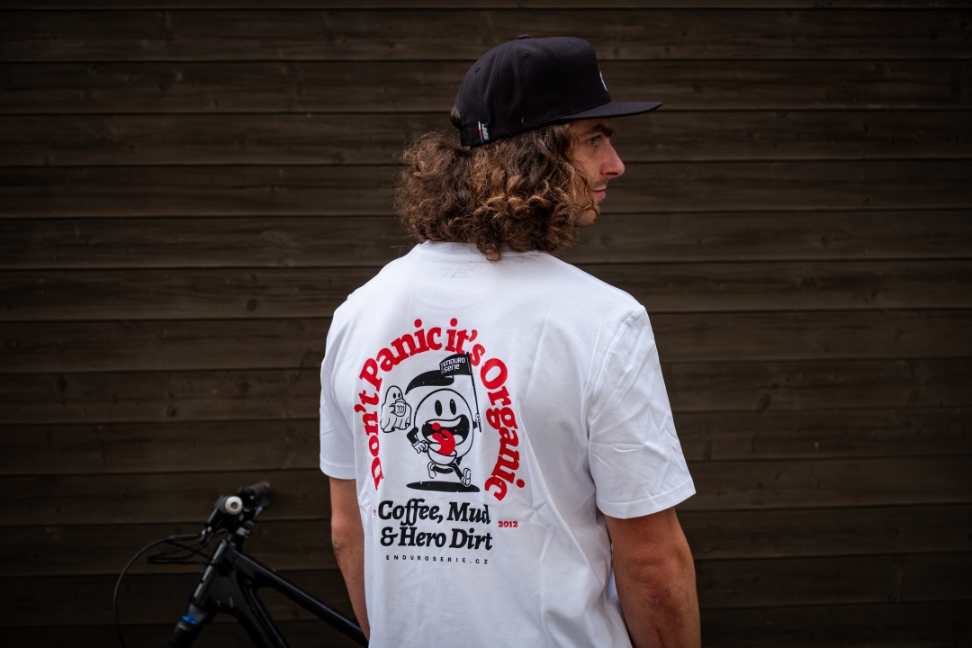 Originální bavlněné tričko s obrázkem, duchem Endura a textem Don’t panic it’s organic.