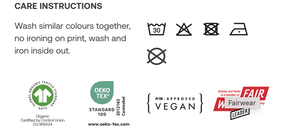 • Praní na 30c,  podobných barev, nežehlit potisk, prát a žehlit naruby.